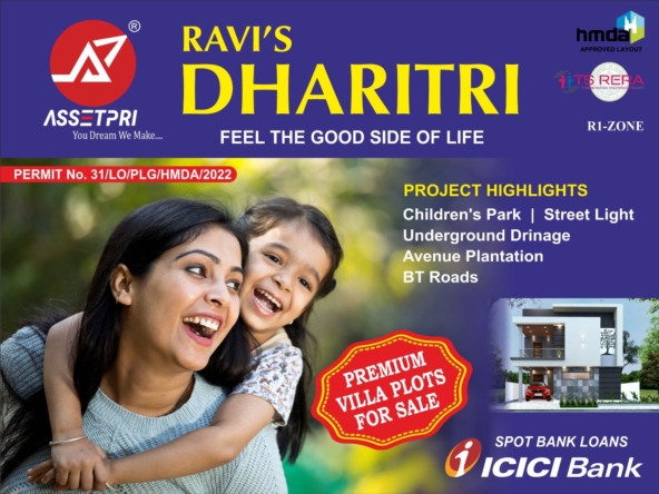 RAVI’s DHARITRI is our Approved 5.5 Acres PREMIUM VILLA PLOTS in Ismankhanpet Roa bed Eardanoor (V), Mamidipalli, Kandi (M), Sangareddy (D) on Mumbai National Highway(NH65). The HMDA Approved & RERA applied plots layout offers modern amenities and is located at prime appreciating location on the Mumbai national highway (NH65) which is the fastest growing investor’s hub and is a home to several projects like Pepsi co., Aurobindo pharma, Kirby, Toshiba, PebsPennar, MRF tyres, NIMZ, WOXSEN, NIMZ13000 Acers Project etc,….